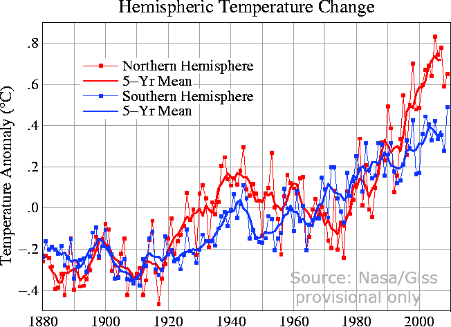 Hemisphere temperature change